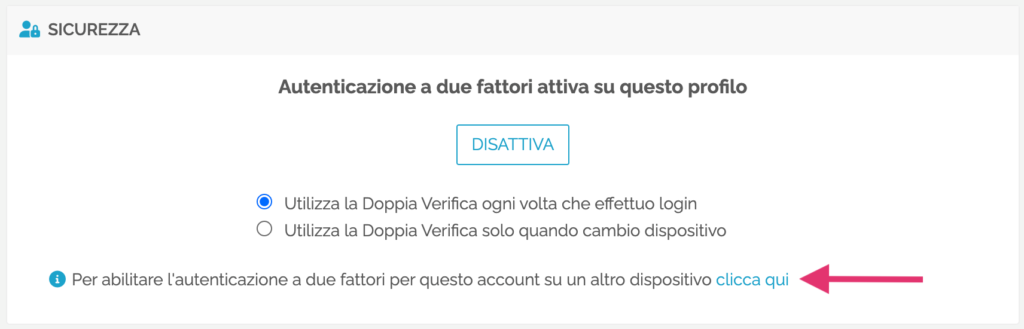 Puoi decidere se effettuare la verifica a due fattori ad ogni login (impostazione di default), oppure solo quando viene rilevato l’accesso da un nuovo dispositivo.