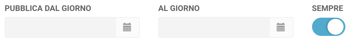 Puoi impostare una data di inizio e di fine delle pubblicazioni, oppure attivare il selettore Sempre per consentire allo Smart Feed di pubblicare continuativamente nel tempo: