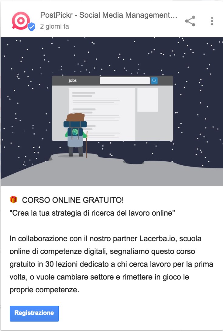 È consigliabile quindi pubblicare almeno un contenuto a settimana, al fine di mantenere la scheda sempre attiva ed attraente.