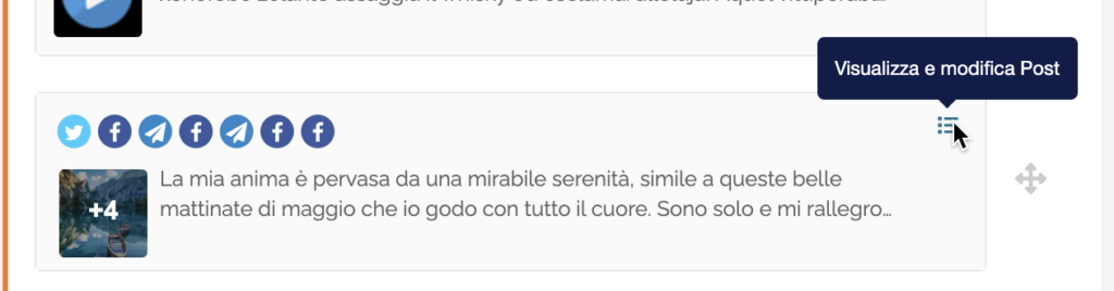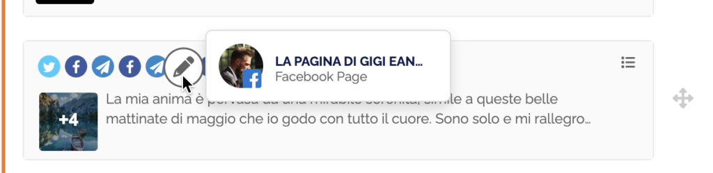 Cliccando su ogni singola icona social, si può aprire ed editare rapidamente il singolo post: