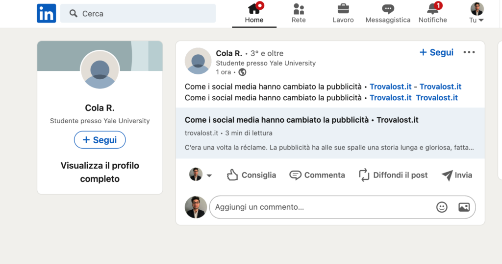 L’anomalia sembrerebbe colpire tutte le tipologie di Canali LinkedIn (profili personali e pagine aziendali) e legata alle pubblicazioni contenenti immagini singole e gallerie di immagini.